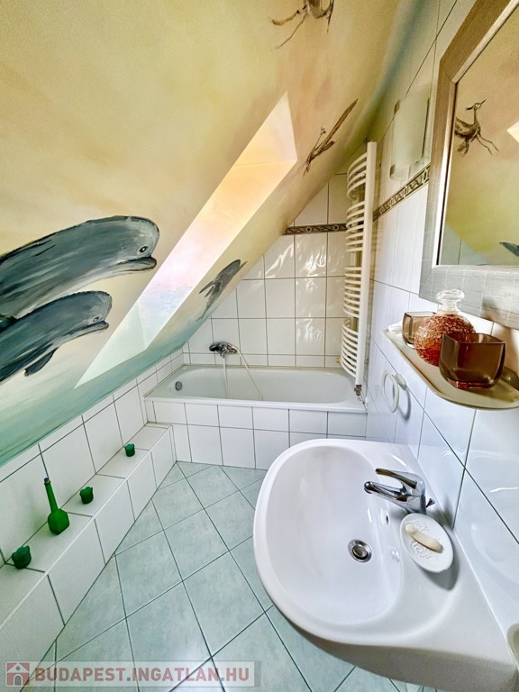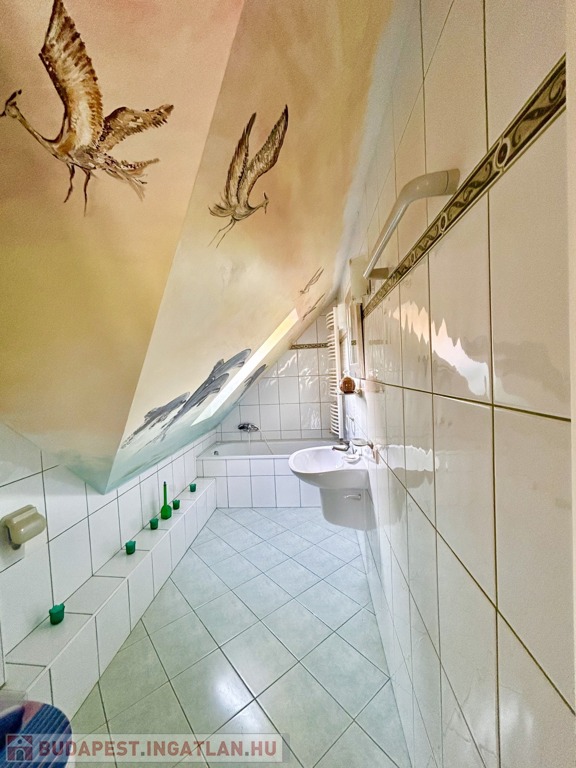 A belső kialakítás is minden igényt kielégítő elgondolások alapján lett kivitelezve, amelybe bele foglaltatik az is, hogy a tetőtéri szobákhoz saját fürdőszoba és illemhelyiség tartozik.