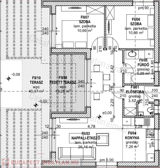 - tégla falazat, grafitos szigetelés, hőtechnikailag közel 0 energiaigény