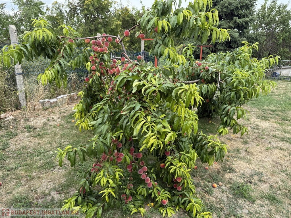 A gondosan karbantartott kertben gyümölcsfák – többek között alma, meggy, sárgabarack és őszibarack – biztosítják a friss termést, míg a veteményes és magaságyás a saját termesztés örömét kínálja.