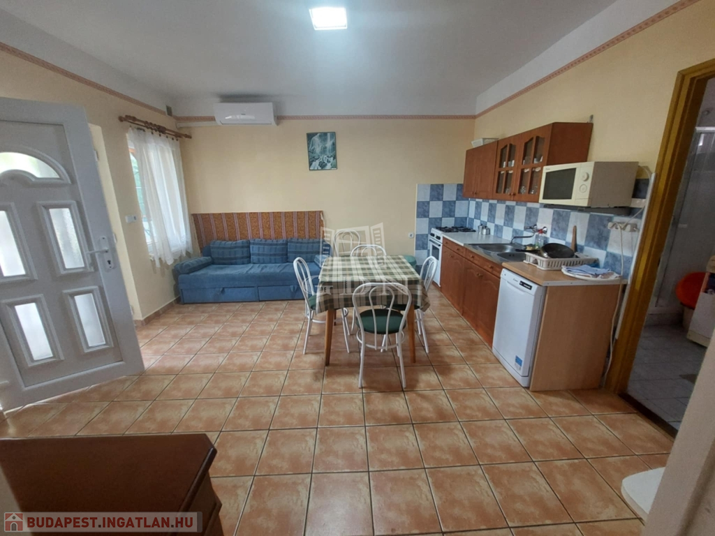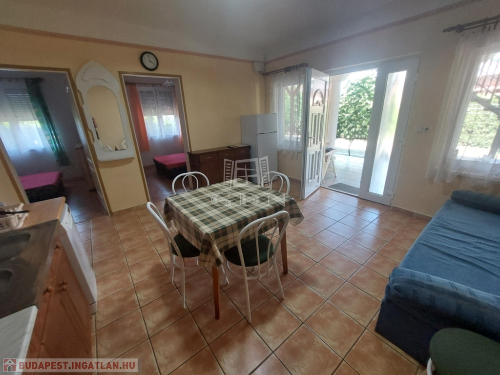 Az 1999-ben épült, jó állapotú, 128 m2-es, 5 szobás nyaraló 863 m2-es parkosított telken helyezkedik el.