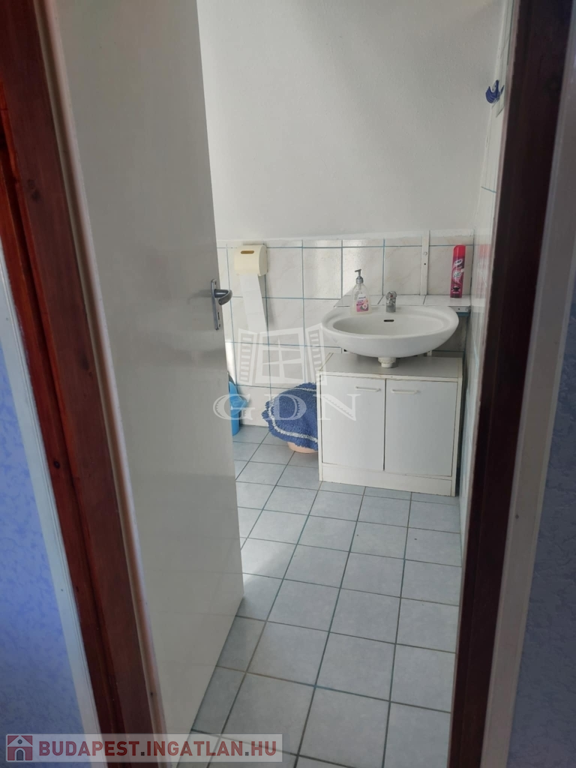 Az épület alsó szintjén egy kisebb nappali-konyha van, innen nyílik két kisebb hálószoba és egy fürdő, melyben kádat és zuhanyzót is találunk.