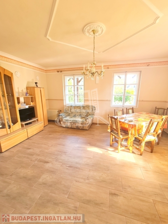 A ingatlan egy 748 m2-es gondozott, körbekerített, sík telken található. Összesen 220 m2-en ad helyet a két lakásnak, melyben a gázon kívül (gáz az udvarban) az összes közmű bevezetésre került. Az egyik lakás fűtése fatüzelésű kandallóval megoldott, illetve a nappaliban található egy villanykandalló is.