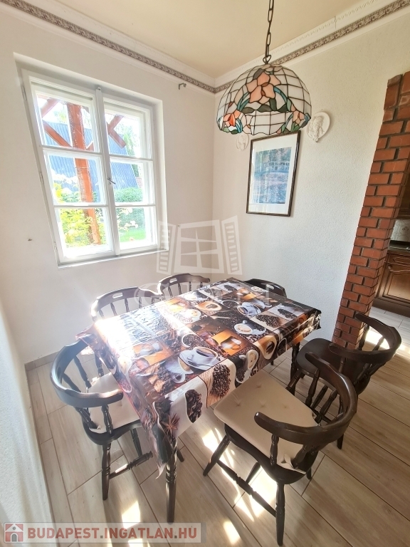 A ingatlan egy 748 m2-es gondozott, körbekerített, sík telken található. Összesen 220 m2-en ad helyet a két lakásnak, melyben a gázon kívül (gáz az udvarban) az összes közmű bevezetésre került. Az egyik lakás fűtése fatüzelésű kandallóval megoldott, illetve a nappaliban található egy villanykandalló is.