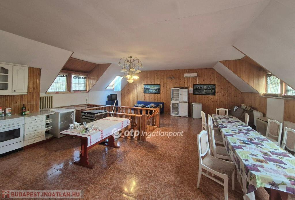 Földszintjén kiszolgáló és tároló helyiségek, egy kisebb lakás fürdővel, és 2 WC találhatók. Hozzáépítésre került még egy fedett terasz is. Tetőterében egy közös, tágas amerikaikonyhás nappaliból nyíló folyosó vezet a 6 különálló egységhez, amit hotelszobaként használtak: minden szobához tartozik egy zuhanyzó WC-vel. Tetőszerkezete ép: zsindellyel és a fedett terasz cseréppel fedett. A földszinti 2 db WC akadálymentesített.