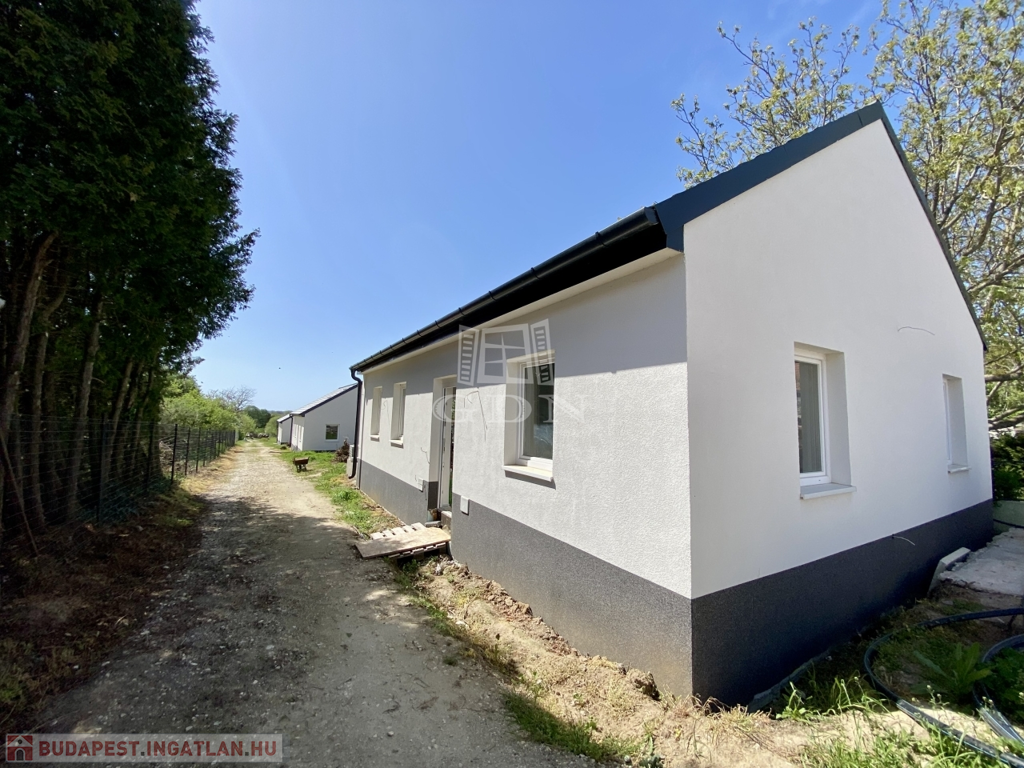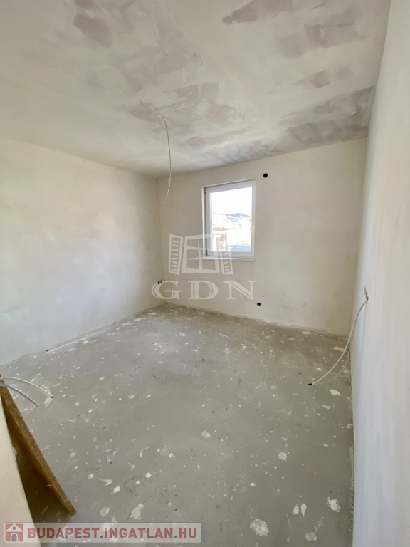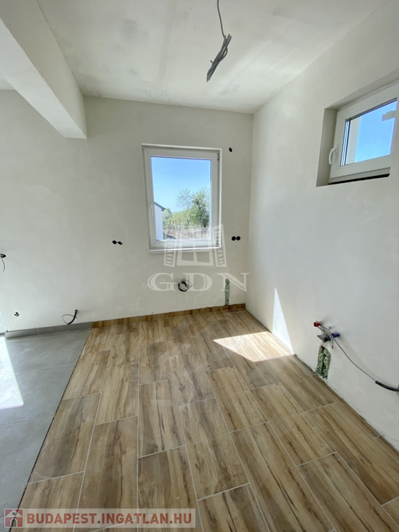 Alsó szinten: világos, déli tájolású amerikai konyhás nappali, két hálószoba, fürdőszoba, valamint egy praktikus kamra, felül még alakíthatóak a helyiségek.