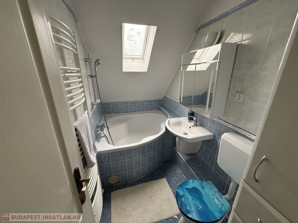 A praktikumról két fürdőszoba gondoskodik: lent fürdő és WC, fent pedig egy sarokkádas fürdőszoba WC-vel, ahol egy hosszú nap után igazán jól esik megpihenni. A tetőtérben található szobákhoz beépített gardróbszekrények tartoznak, így a tárolás is kényelmesen megoldott.