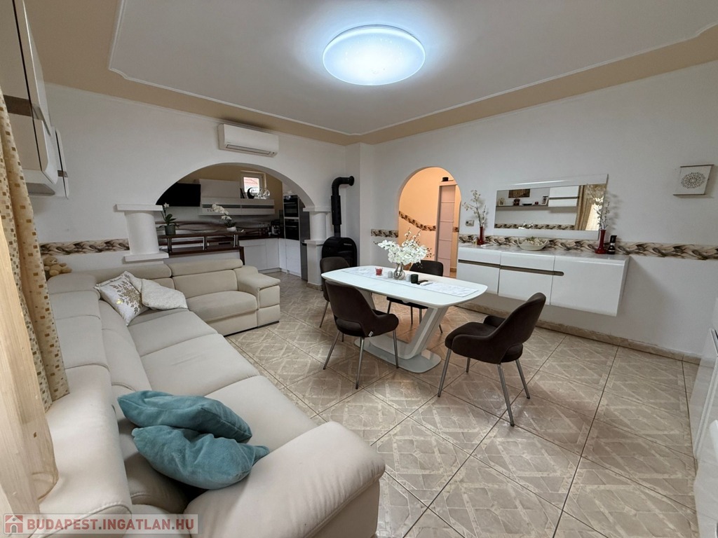 A ház világos lakótere kényelmes életteret biztosít akár egy nagyobb család számára is. A 2 egész és 2 félszoba funkciója rugalmasan alakítható – lehet háló, dolgozószoba vagy vendégszoba, ahogy az élet éppen megkívánja.