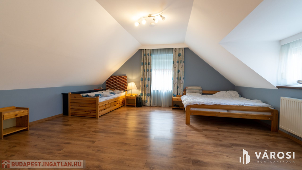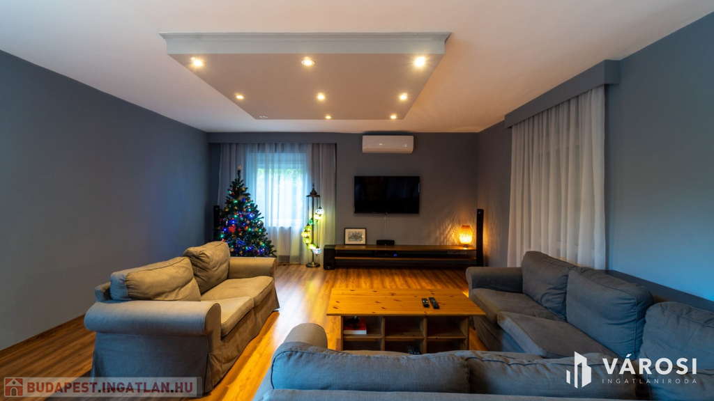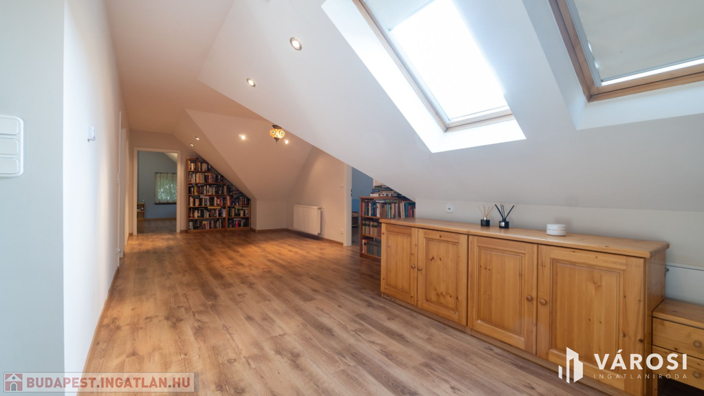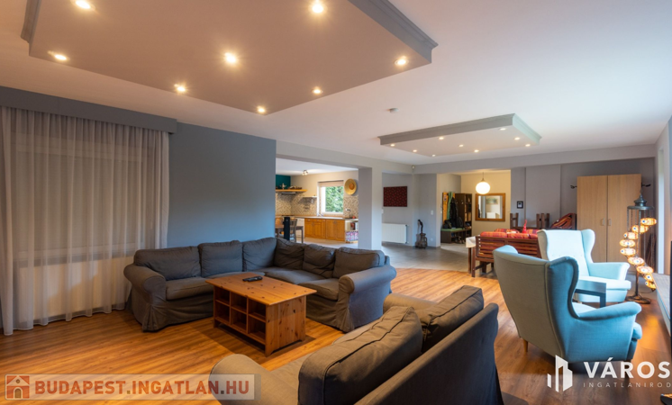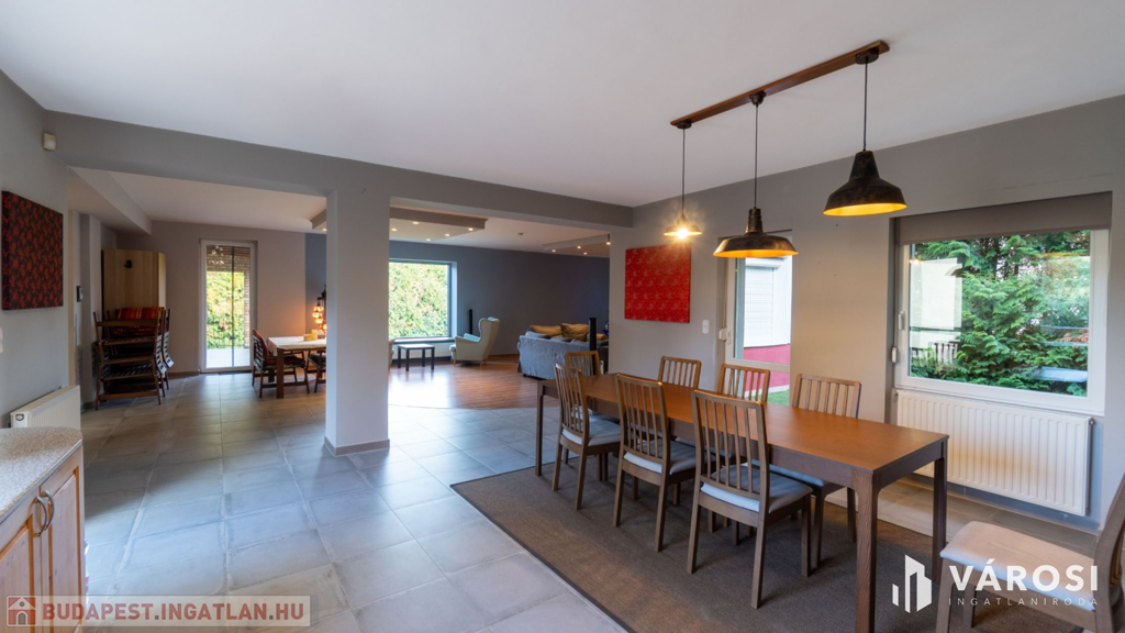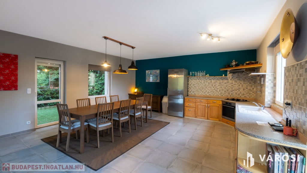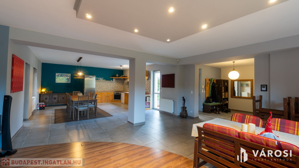 A gondozott kert kiváló lehetőséget nyújt a kikapcsolódásra, ideális környezet azok számára, akik nyugalomra és természetközeli élményre vágynak. A parkosított telek folyamatos ápolásáról szakemberek gondoskodnak, így mindig rendezett látványt nyújt. A kertben található teraszok ideálisak szabadtéri pihenéshez, baráti összejövetelekhez vagy grillezésekhez. Ezen felül a hátsó kert kialakítása lehetővé teszi egy nagyobb medence telepítését, amely tovább fokozza a nyári kikapcsolódási lehetőségeket.