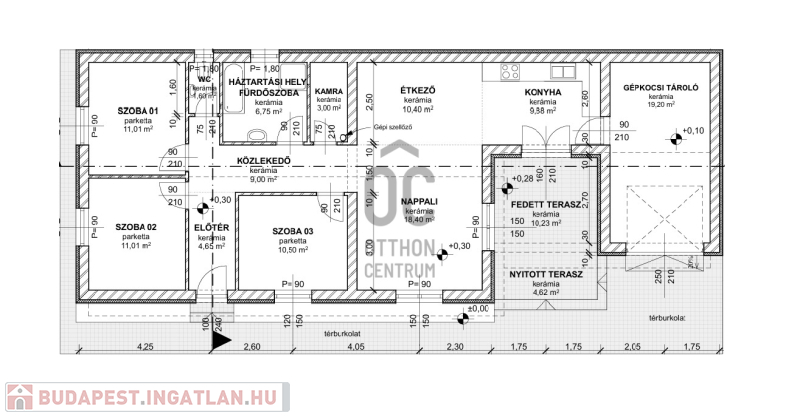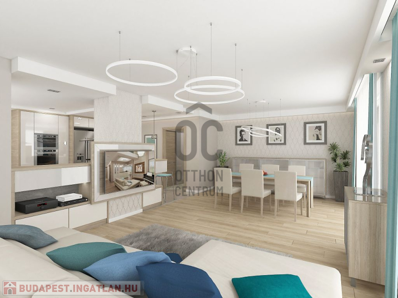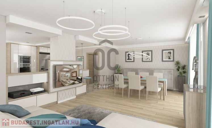 - fedett terasszal kapcsolatos konyha- étkező- nappali, 3 kényelmes méretű hálószoba, fürdőszoba és külön WC, mosókonyha és széles közlekedő