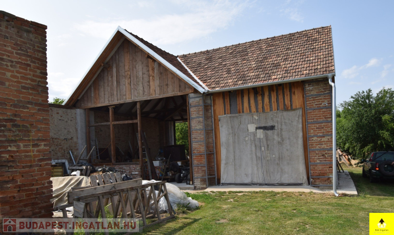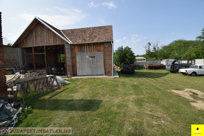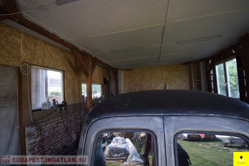 A harmadik és talán a legérdekesebb épület egy 200 m2 alapterületű rendkívül masszív pajta épület, amelynek jelenleg a fele felett van tető. A pillérek állnak és az eredeti elképzelés szerint egy nyitott szín lett volna, de természetesen ez másképp is kivitelezhető. Mivel a térképen az eredeti 200 m2 szerepel ez mindenféle engedély nélkül megoldható. A pajta belmagassága 4 méter !! így akár raktározási célokra is kiválóan alkalmas lehet, de lakóházzá is alakítható. A pajta betongerendával körbe van vasalva és 20 cm vastag Fiber erősítéssel ellátott aljzatbetont kapott így rendkívül erős és masszív lett. Nagy gépek, teherautók, vagy nehéz dolgok tárolására is kiválóan alkalmas lehet. Az épületben egy 45 m2 -es fűthető részben hőszigetelt "pajta műhely" lett kialakítva amely fűthető részben hőszigetelt és könnyűszerkezetes falazattal rendelkezik. A pajta tetőterét pedig szintén többféleképpen hasznosíthatjuk hatalmas méretlének köszönhetően. Lehet tágas lakás, raktár vagy műterem, de hagyhatjuk így nyitottan is az óriási belmagasságának köszönhetően galériásan is.