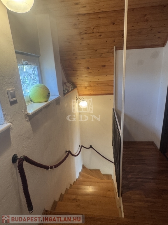 A 1245 négyzetméteres telek parkosított, gondozott valami a kertből a Dunát látjuk. A környék csendes, nyugodt a közbiztonság kiváló.