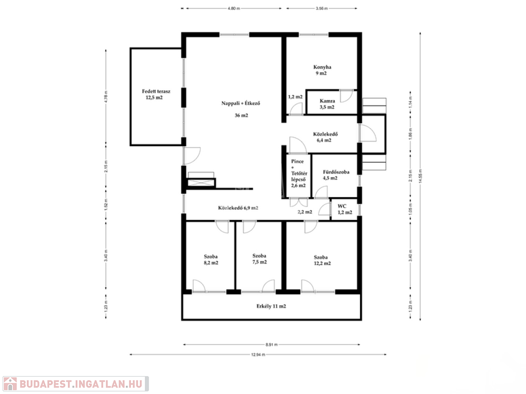 3. szint (65 m2) beépíthető tetőtér, ablakokkal és szigeteléssel a tető alatt