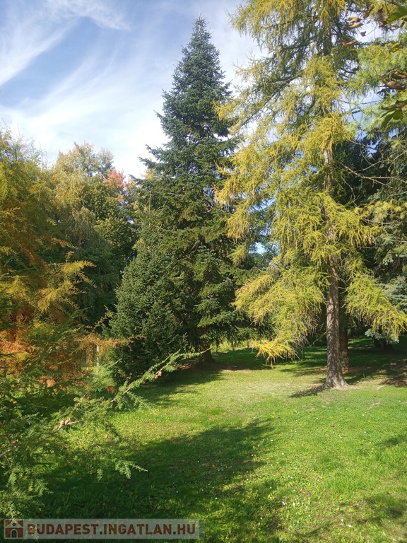 - Parkos, közel 1700 m²-es telek: A 1692 m²-es kert igazi zöld oázis: felnőtt fenyők, tuják, ciprusok és gyümölcsfák adják meg az udvar hangulatát. A nagy fák természetes árnyékot és intim, nyugodt környezetet biztosítanak.