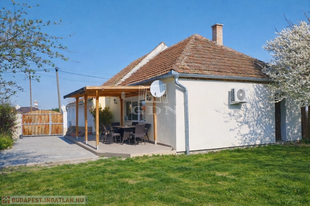 Egy teljesen körbekerített, 1000 m²-es telken található ez a gondozott állapotú ház, amely 90 m² lakóterülettel rendelkezik, csendes utcában, kellemes lakókörnyezetben.