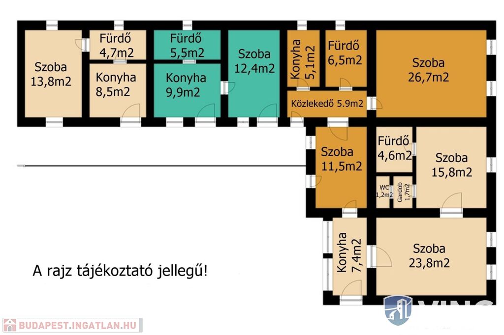 A házban jelenleg négy különálló lakrész van kialakítva.