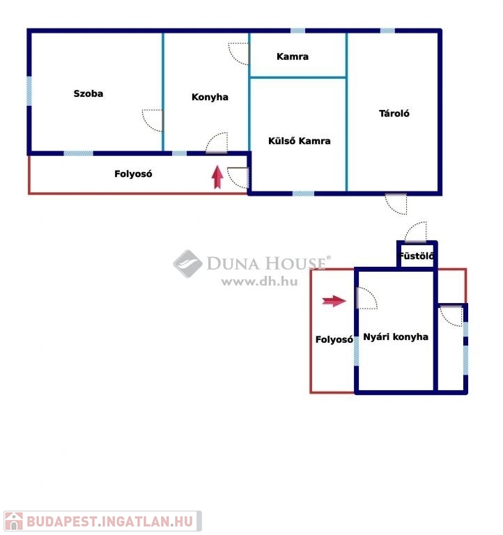 egy tágas szoba, konyha, kisebb kamra, valamint egy nagyobb helyiség található benne, amely akár egy újabb szobává is átalakítható a szükségletek szerint.