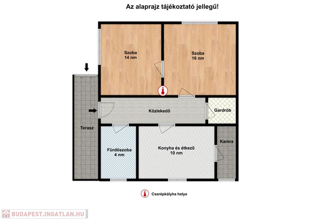 - 2 szoba (az előszobába nyitható egy új ajtó, amely lehetővé tenné a 2 különnyíló szoba kialakítását)