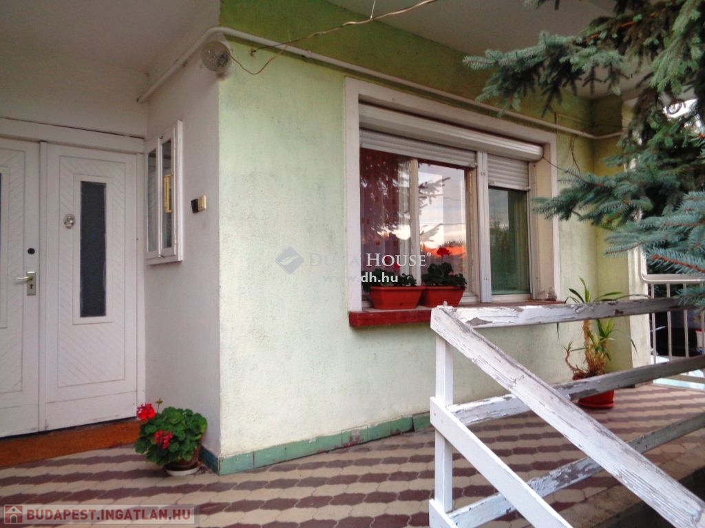 A ház előkertes (oldalt is van még egy pici terület), a telken egy garázs és egy tároló is található.