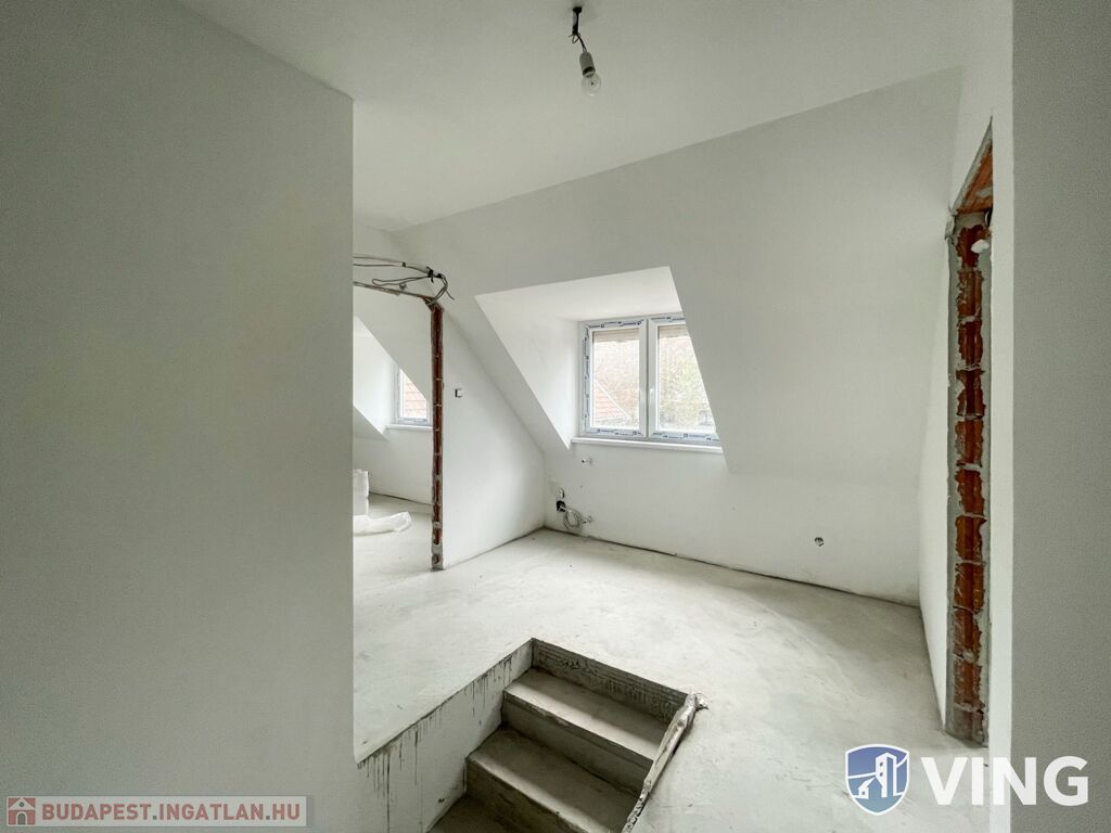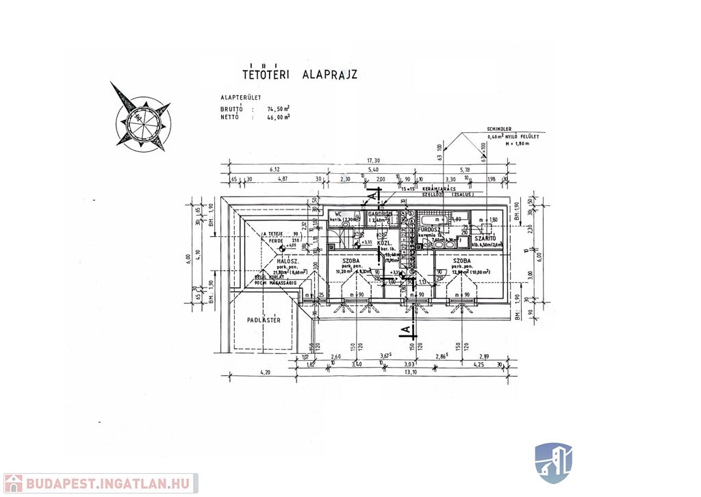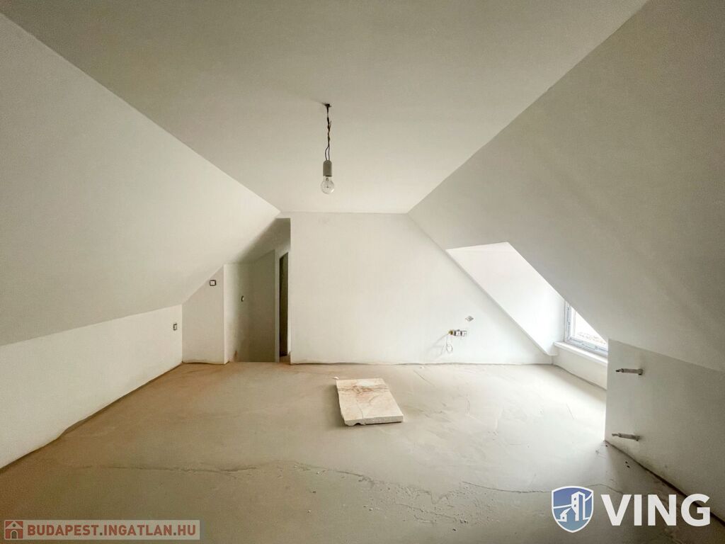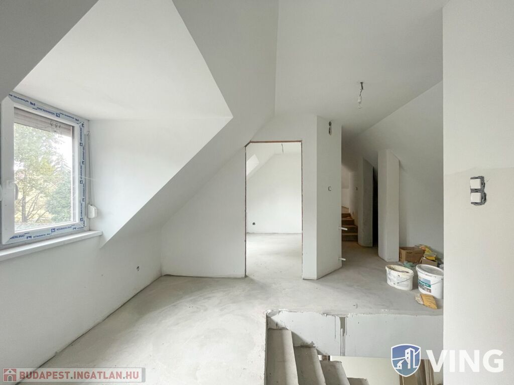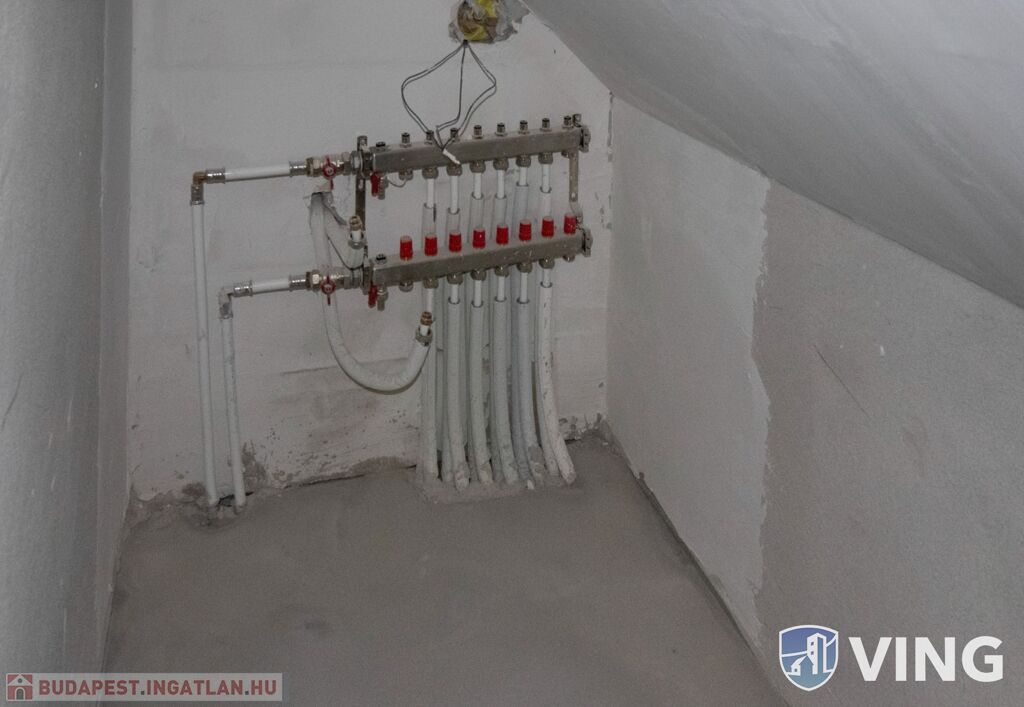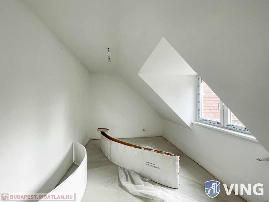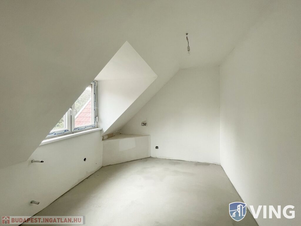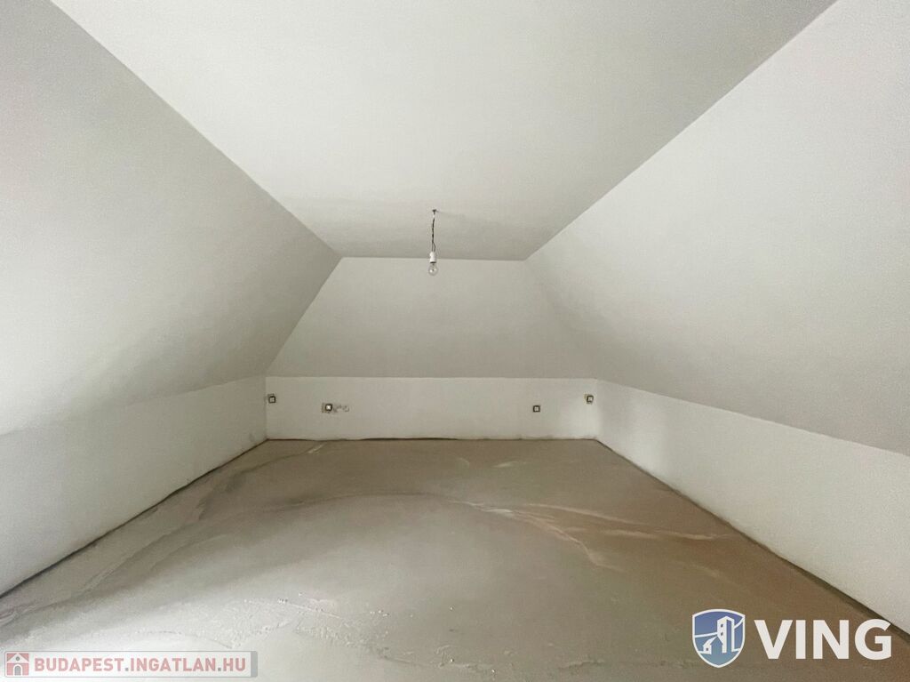 Az épület tetőtere 46 m2 hasznos területű, három hálószoba, egy fürdőszoba, szárítóhelyiség/mosókonyha került kialakításra.