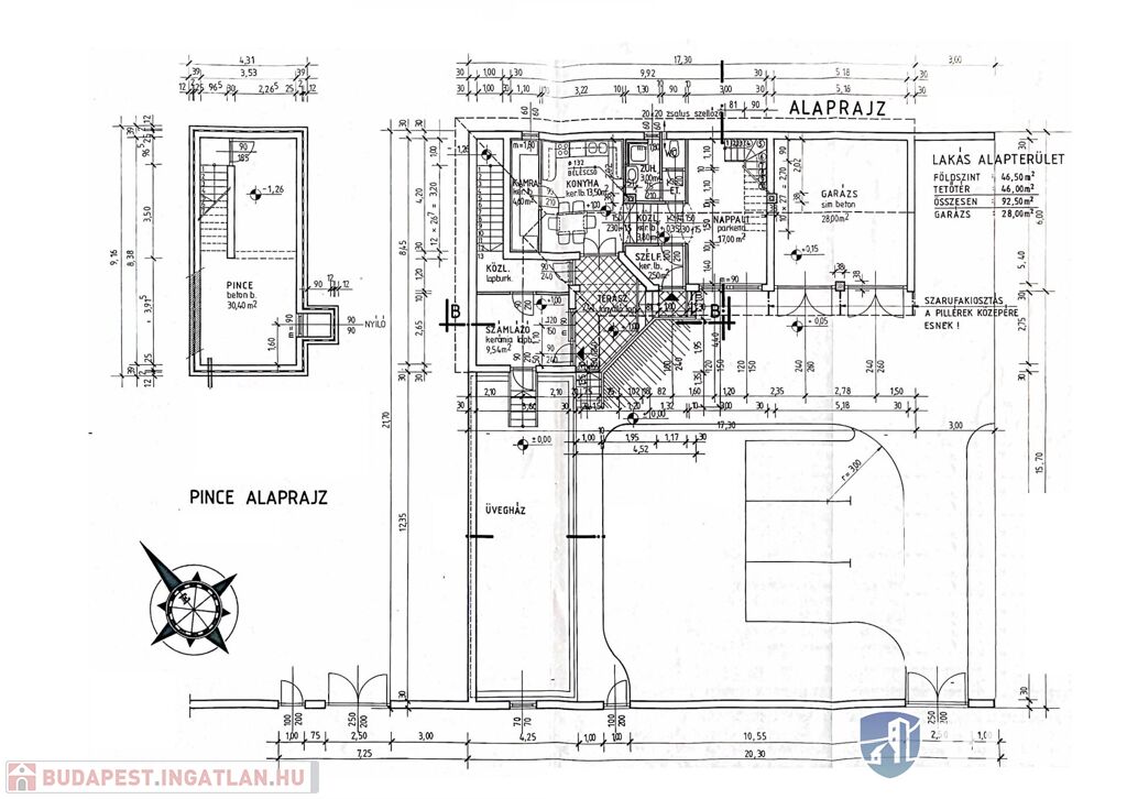 Az épület alatt egy 30 m2-es, száraz, kifogástalan állapotú pince található, melynek egy részében hőtőkamra került kialakításra.