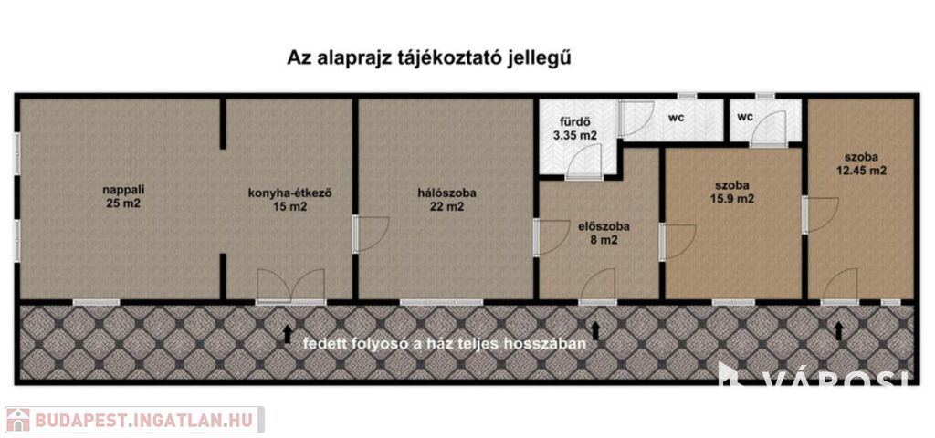 - lakótér: nappali plusz 3 szoba, konyha-étkező, előszoba, fürdő, 2 wc