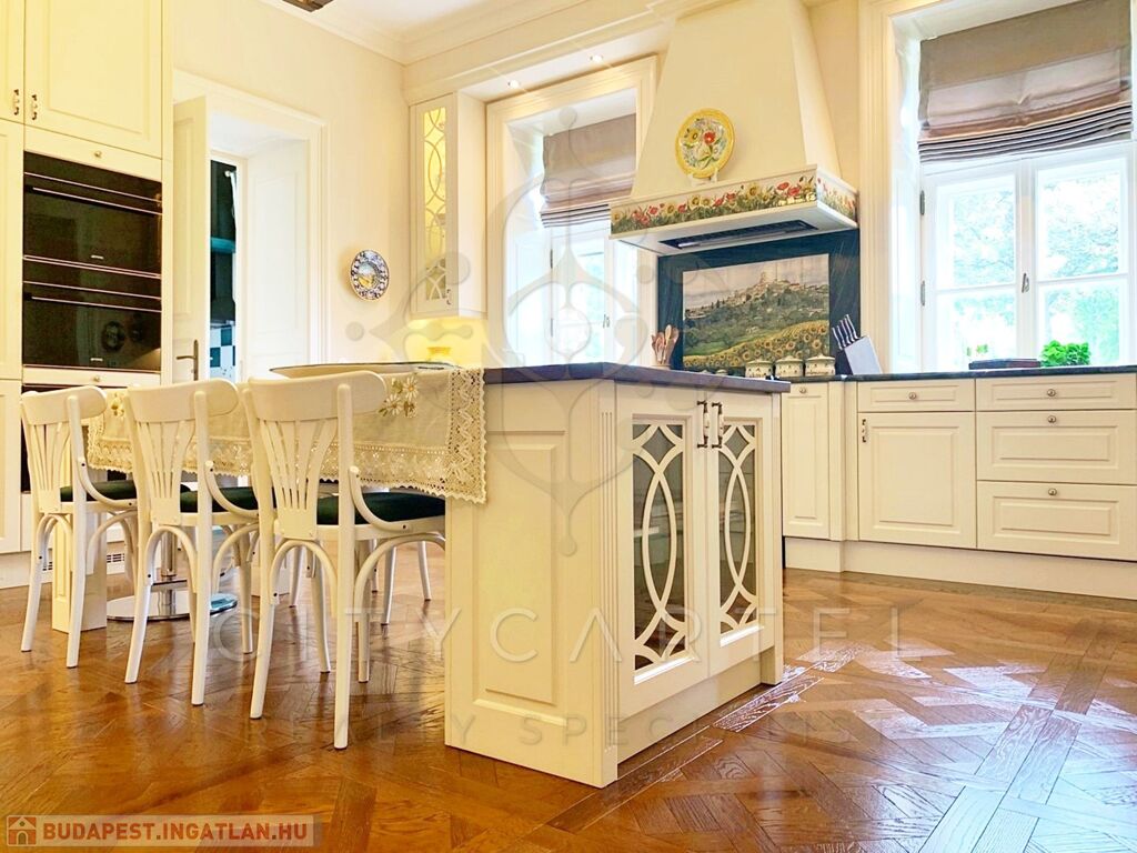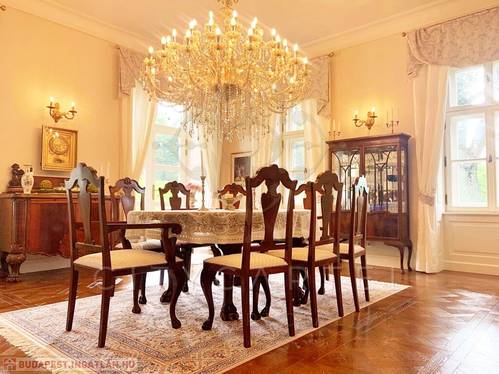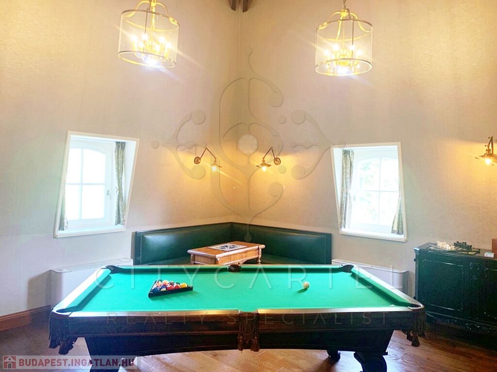 Geotermikus fűtés, a legjobb magyar faipari cég által készített egyedi külső és belső nyílászárók, csodálatos olasz hidegburkolatok, a közösségi helyiségekben, hálószobákban, látványkonyhában olasz svédpadló és táblaparketta, két cserépkályha, eredeti, restaurált kandalló, a hálószobákban selyemtapéták. Minden hálószoba más színben és hangulatban, ahogy a hozzájuk tartozó fürdőszobák is. Fitneszterem gépekkel, szauna (kiépítés előtt), szivar/játékterem. Professzionális riasztó és kamerarendszer. Eredeti antik tárgyak, kristály csillárok.