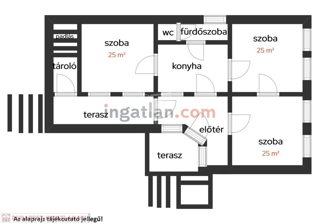 Az 1950-es években épült ház, 8 évvel ezelőtt teljes műszaki és esztétikai felújításon esett át (a tető kivételével). A 130 m²-es lakótérben három, egyenként kb. 5x5 méteres, világos és tágas szoba található. A belmagasság impozáns, 3,1 méter.
