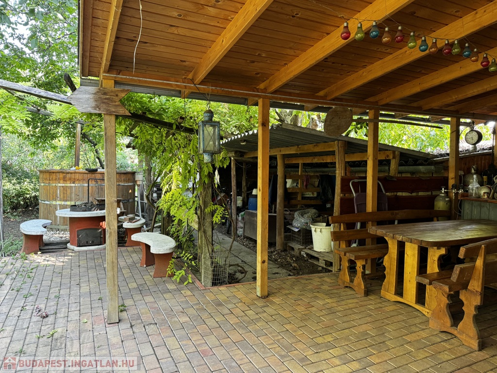 A kikapcsolódást épített terasz, kemence, grillsütő, dézsa biztosítja. Telek 2 270 m3. Kertészkedésre alkalmas.