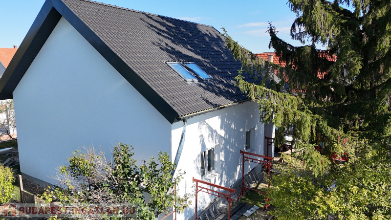 A hirdetésben szereplő ház egy régebbi ház teljes újjáépítéséből született. 2 főfal kivételével minden új. A telek osztott tulajdonú, társasházi alapító okirattal kerülnek átadásra. Az ingatlan utcafrontról megközelíthető, a hátsó ingatlanhoz szolgalmi út vezet. A két épület között 10 méter a távolság.