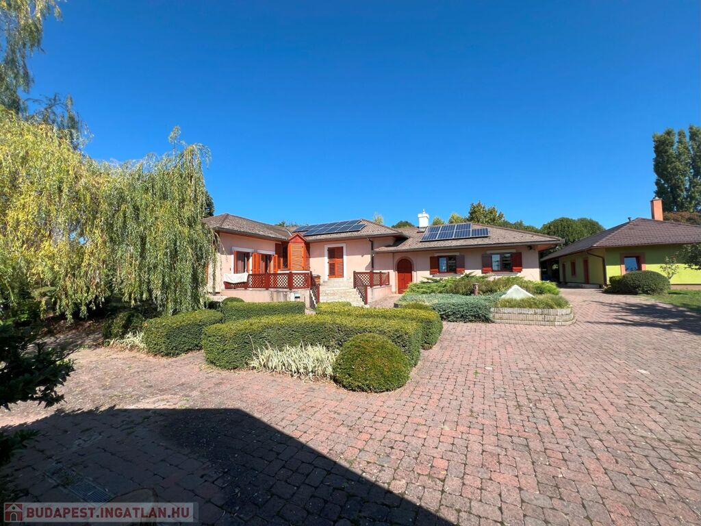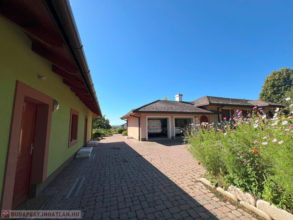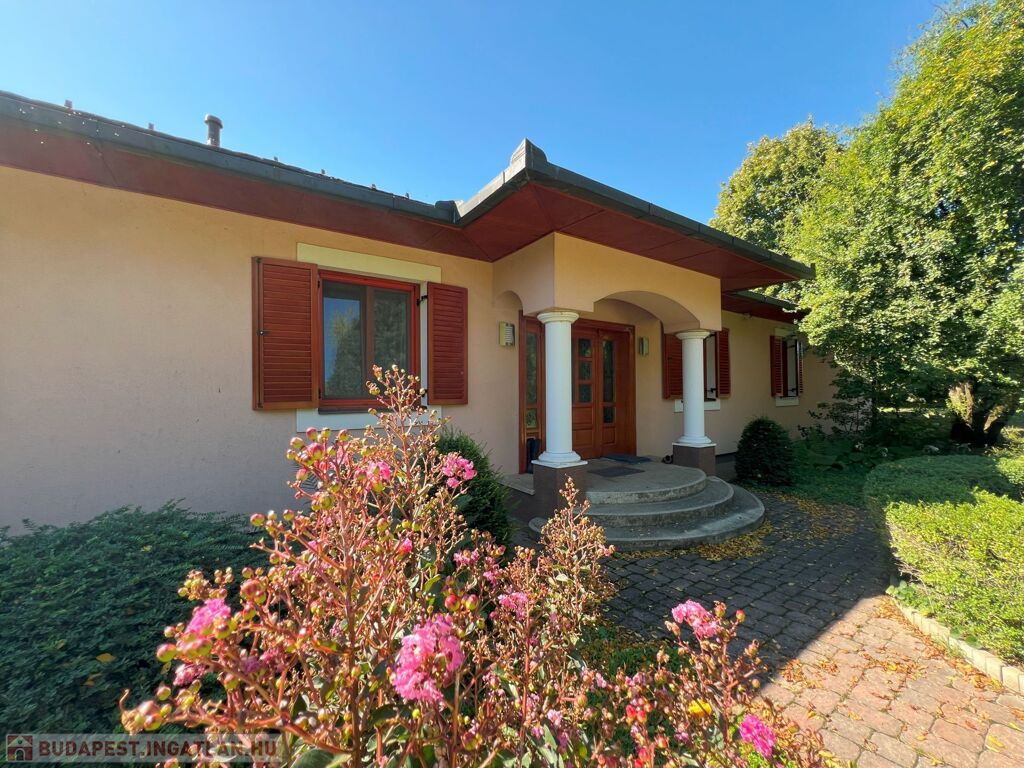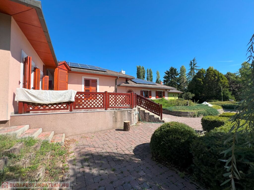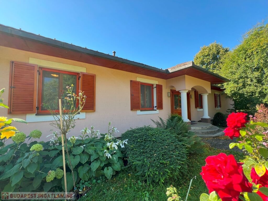 Az ingatlan jellemzői: A főépület a kilencvenes évek elején épült téglából, masszív betonfödémmel és cseréptetővel, amely beépíthető tetőtérrel további bővítési lehetőséget kínál. A 190 négyzetméteres otthon központi tere a tágas, déli tájolású nappali hatalmas üvegfelületekkel, amely közvetlen kapcsolatban áll a nagy terasszal, ahonnan a kert panorámája tárul elénk. A nappaliból egy szinteltolással nyíló konyha, hálószobák, gardrób és fürdőszobák érhetők el, a fürdő egyik különlegessége egy infraszauna. Az épület 10 cm homlokzati és 40 cm födém hőszigeteléssel rendelkezik, valamint fa nyílászárókkal dupla üvegezéssel van felszerelve.
