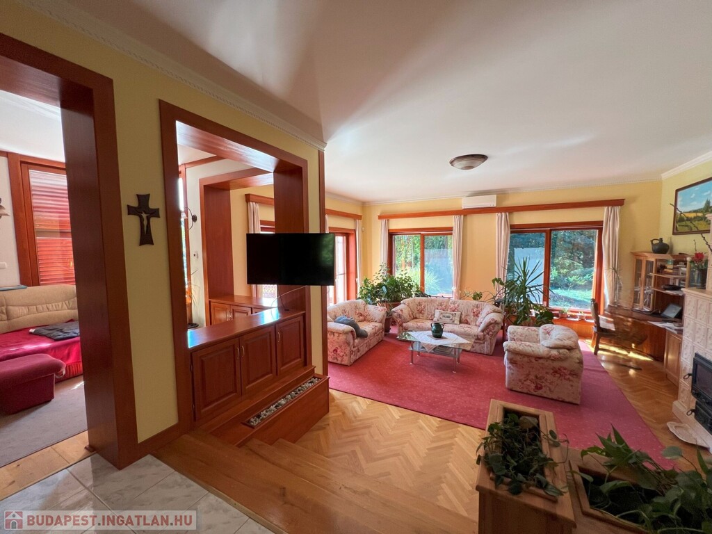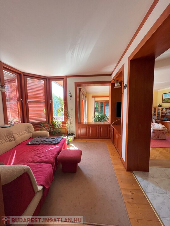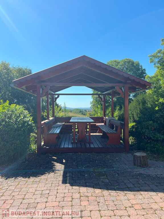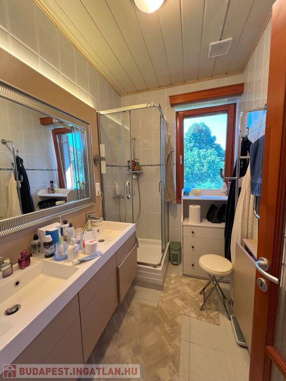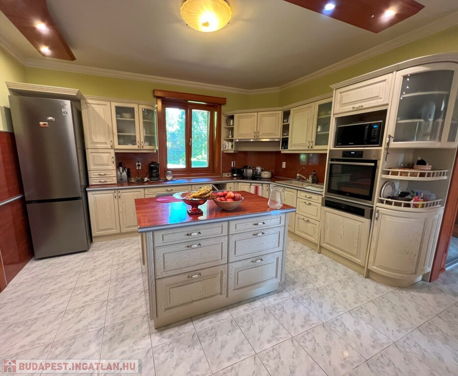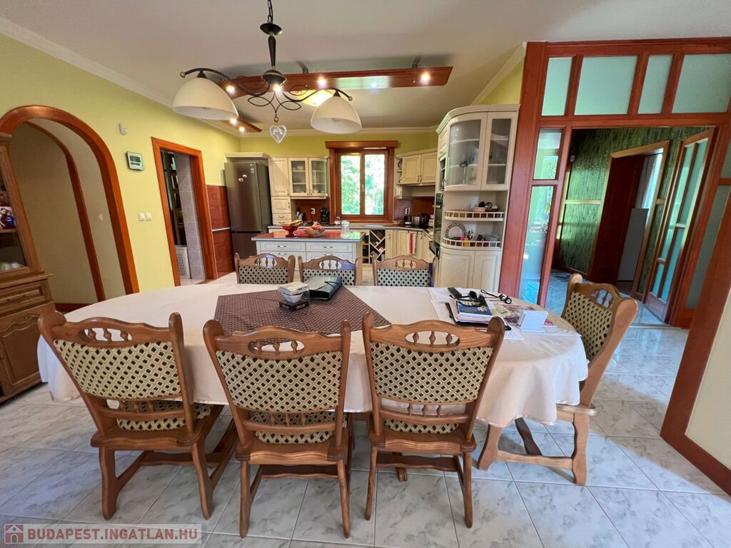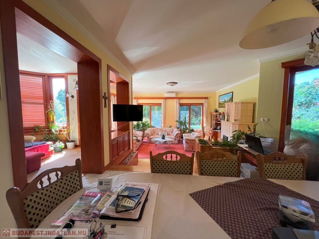 Az ingatlan jellemzői: A főépület a kilencvenes évek elején épült téglából, masszív betonfödémmel és cseréptetővel, amely beépíthető tetőtérrel további bővítési lehetőséget kínál. A 190 négyzetméteres otthon központi tere a tágas, déli tájolású nappali hatalmas üvegfelületekkel, amely közvetlen kapcsolatban áll a nagy terasszal, ahonnan a kert panorámája tárul elénk. A nappaliból egy szinteltolással nyíló konyha, hálószobák, gardrób és fürdőszobák érhetők el, a fürdő egyik különlegessége egy infraszauna. Az épület 10 cm homlokzati és 40 cm födém hőszigeteléssel rendelkezik, valamint fa nyílászárókkal dupla üvegezéssel van felszerelve.