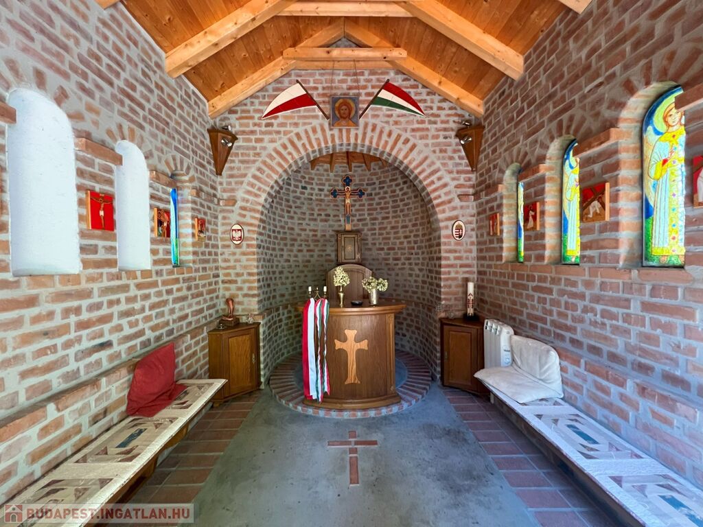Az ingatlan igazi éke a fák között megbújó kis kápolna színes üvegablakaival, amely tökéletes helyet kínál csendes elmélyüléshez vagy meghitt pillanatok megéléséhez. A házhoz továbbá tartozik egy mellette fekvő, körülbelül egyhektáros terület is, amely jelenleg nincs körbekerítve, valamint egy aszfaltozott buszforduló, amely közvetlenül a telek előtt található, így kényelmes megközelíthetőséget biztosít.