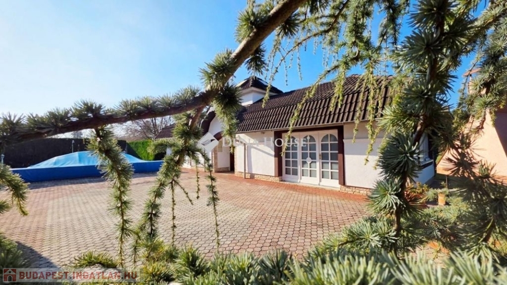 A ház mellett 6x10 méteres medence van, rejtett elvezetésű feszített víztükörrel, hozzá tartozó gépészettel, csúszásmentes gránit kerettel, kültéri zuhanyzóval.