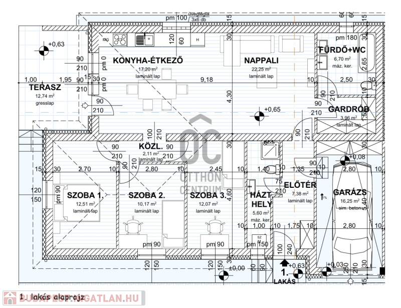 1. lakás Br.122 nm egy szinten utcafronti elhelyezkedéssel: