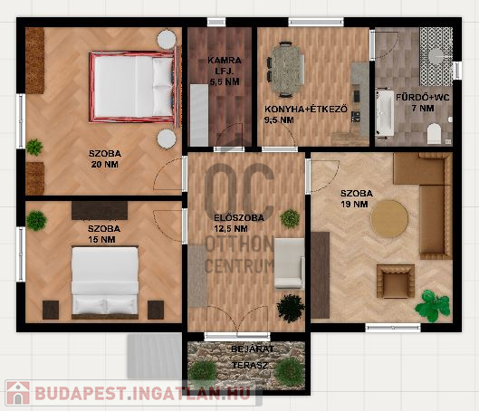-3 nagyon tágas szoba, konyha-étkező, előszoba, kamra+padlásfeljáró, fürdő+WC