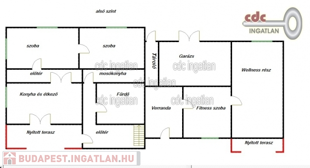 - Wellness- fitness részleg, nyitott napozó terasz veranda, ami társalgó ként is hasznosítható.