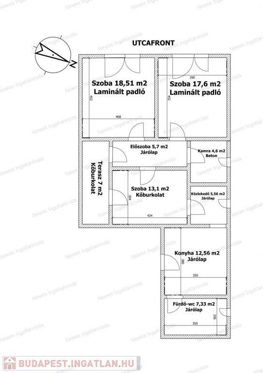 Az ingatlan elosztása átgondolt és praktikus: három szoba, előszoba, kamra és közlekedő biztosítja a kényelmes mindennapokat. A ház eredetileg klasszikus „kádár kocka” típusú épületként épült, amelyet később bővítettek, így alakították ki a tágas konyhát, fürdőszobát WC-vel, pincét és tárolót.