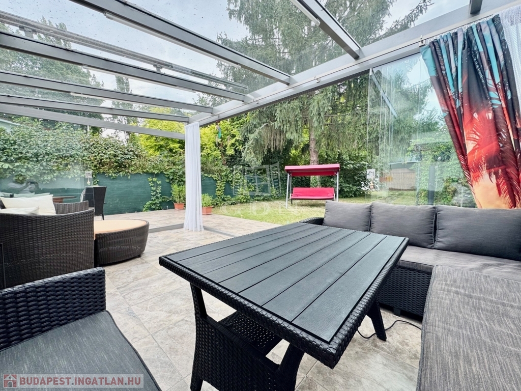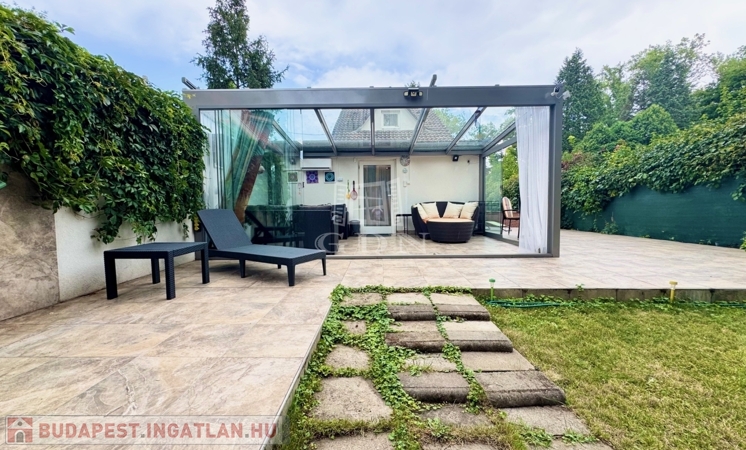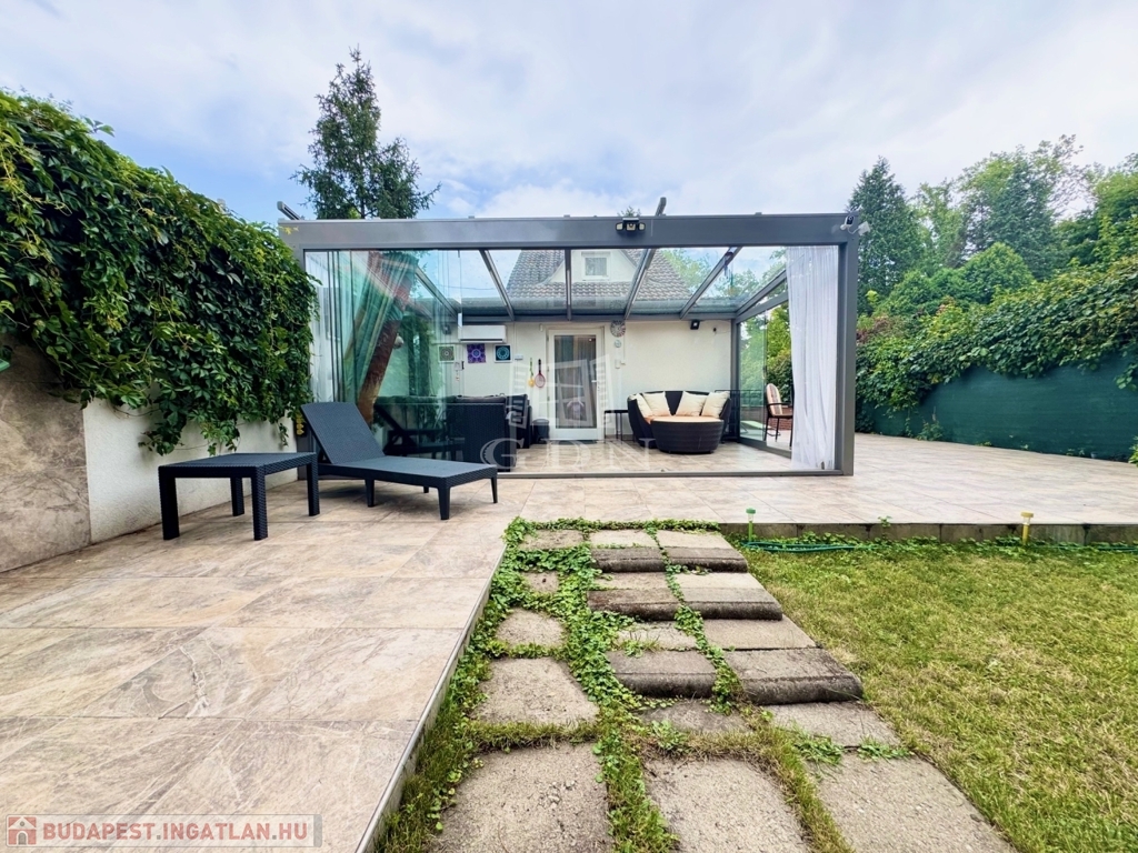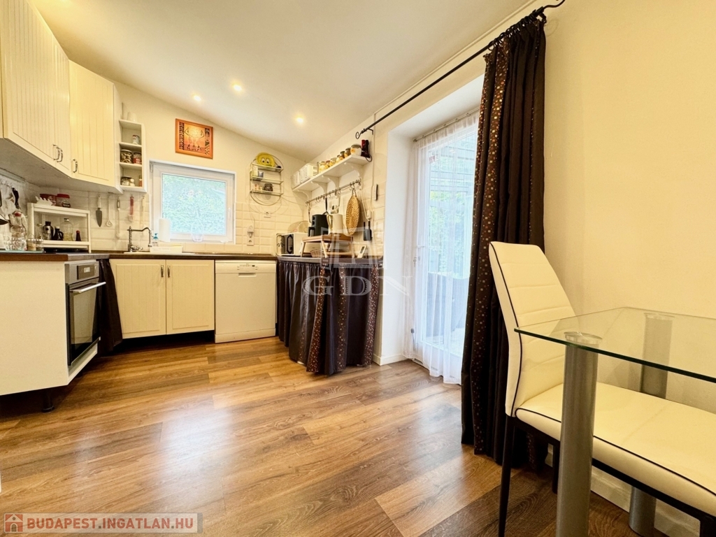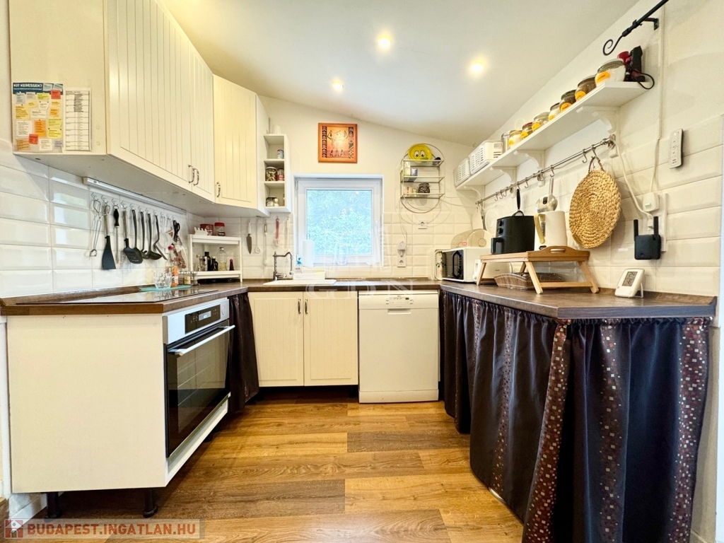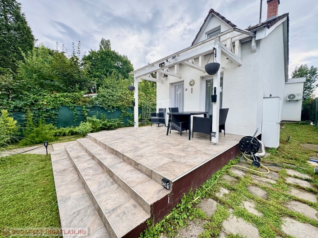 Karnyújtásnyira Bp III. kerületétől, Budakalász üdülőövezetében, (Üh-H) csendes aszfaltozott mellékutcában, közvetlen Dunaparti, 720 nm-es telken 1980-as években, tégla falazattall épült, körbejárható, kétszintes, 72 nm-es hasznos lakóterületű,(alapterület 42 nm) 2 szobás, étkező konyhás, dupla teraszos, (20+50nm) elektromos cirkó fűtésű, napos-világos fekvésű (É-K-D-NY), alacsony fenntartású, 2020-ban, teljes körűen, magas műszaki szinvonalon felújított, szigetelt, klimatizált családi/ház/nyaraló, beépített, gépesített konyhával, 17 nm-es igényesen kialakított, fűthető és zárható téli kerttel, elektromos redőnyökkel, 50 nm-es kerti tárolóval, fúrt kúttal, gondozott kerttel eladó.