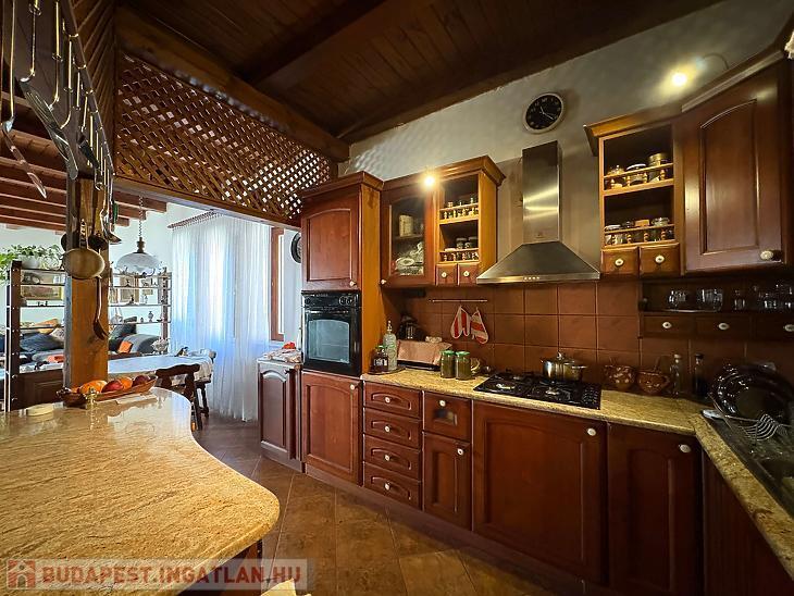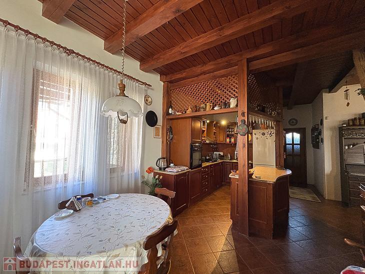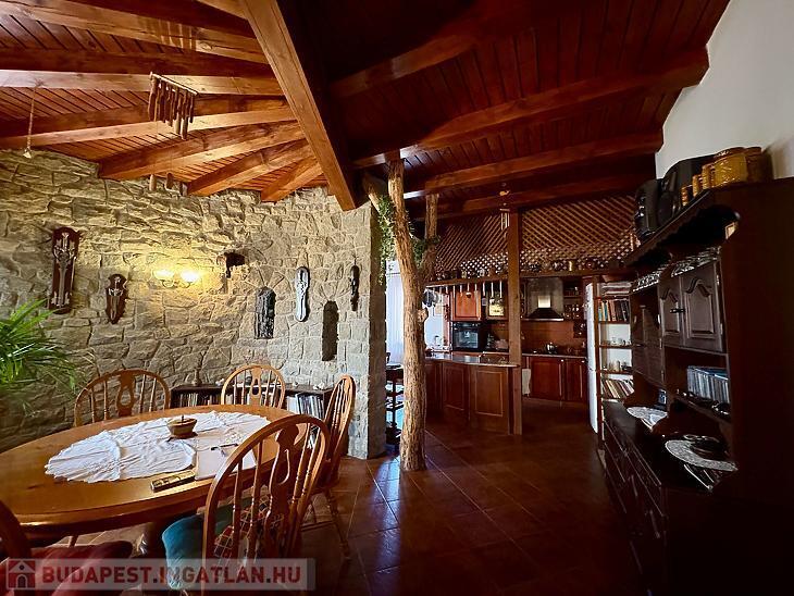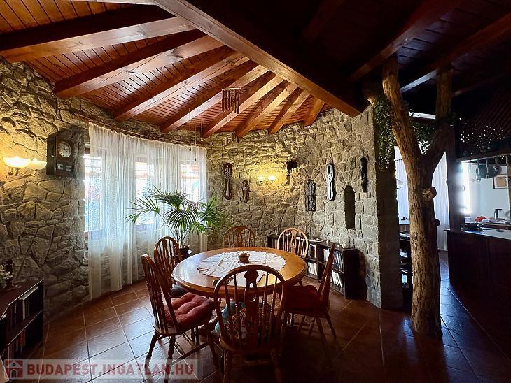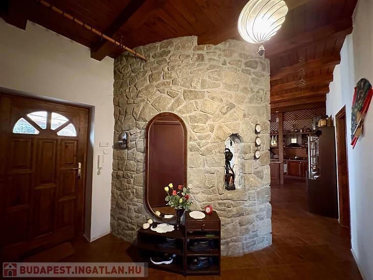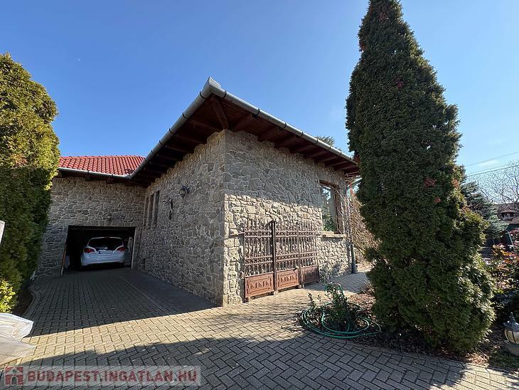 -2003-ban épült, 30-as Porotherm téglából, a ház teljes falfelületét faragott kő borítja.