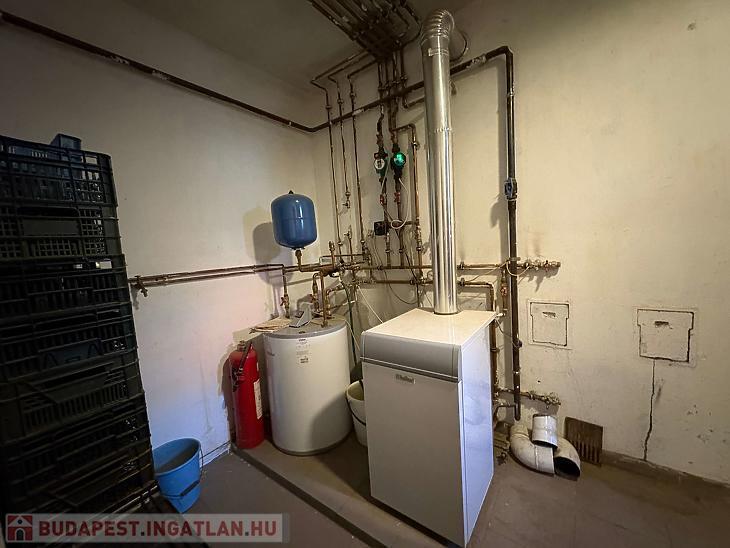 -A fűtésért egy Vallaint gázkazán felel, hőleadás a padlón keresztül, a nappaliban és a két hálószobában peremfűtés lett kiépítve.