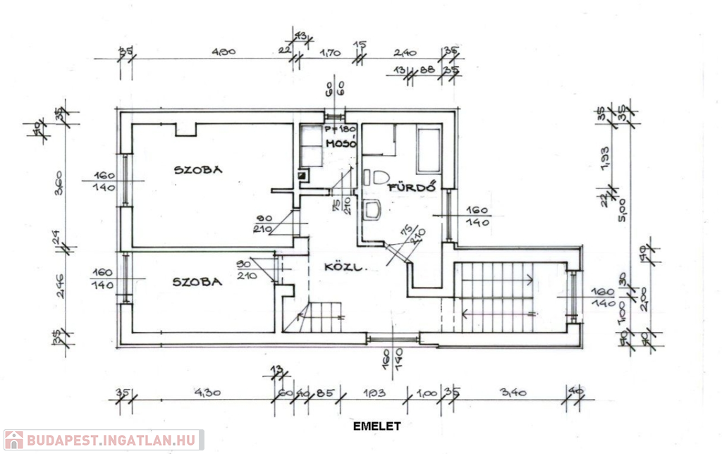 - emelet: 2 hálószoba, fürdőszoba, háztartási helyiség;