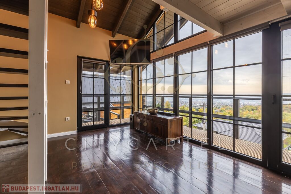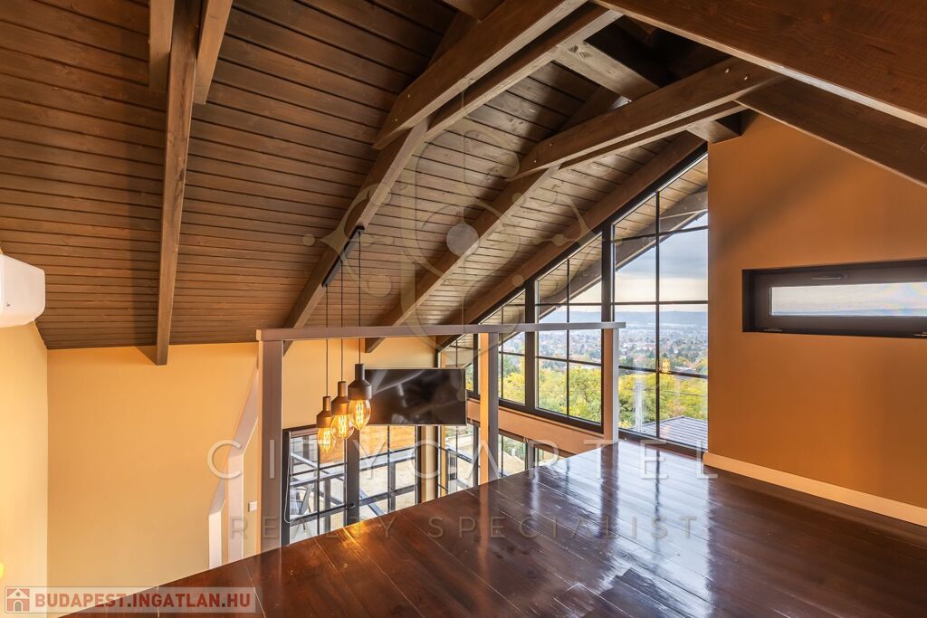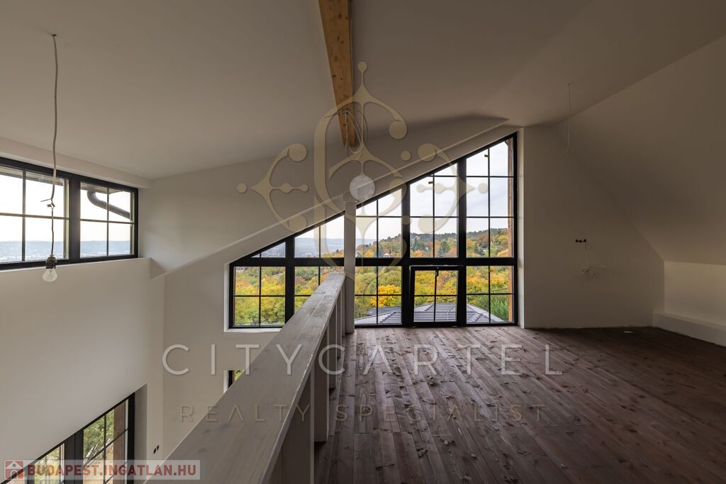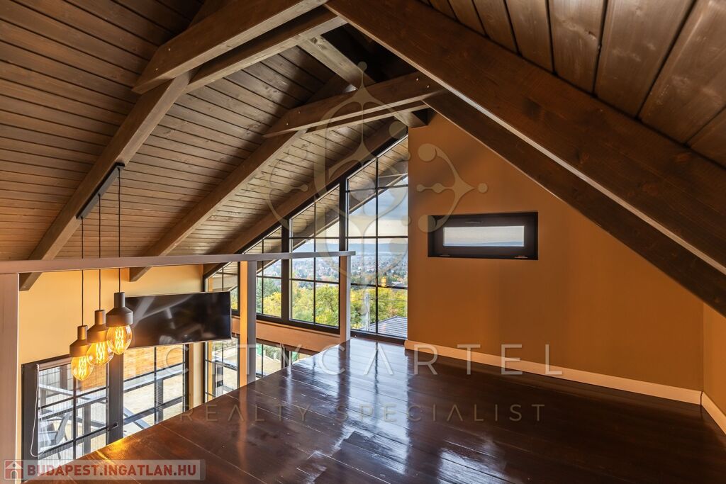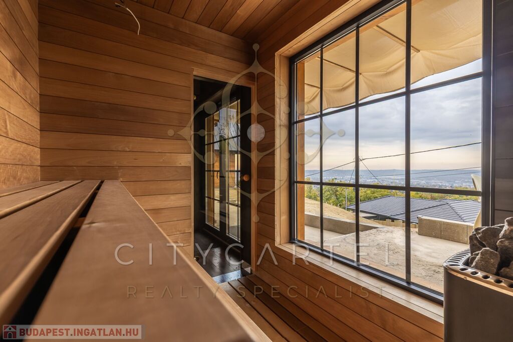 - A kertszinten két szoba és egy zuhanyzós fürdőszoba került kialakításra, közvetlen kertkapcsolattal és egy 20 nm-es terasszal. Erről a szintről is csodás kilátás nyílik, ami különlegessé teszi az ingatlant – hiszen még a kertből is panoráma tárul elénk. Ezen a kertrészen akár egy kisebb medence is kialakítható, tovább fokozva a megélhető nyugalmat és luxust.