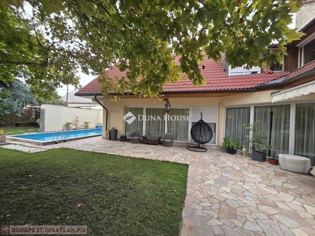 A 993 nm-es kert gyönyörű és a budaörsi viszonyok ellenére meglepően intim. Külön dísze a grillező hely és a komoly gépészettel rendelkező kültéri medence (8 mX3,6 m).