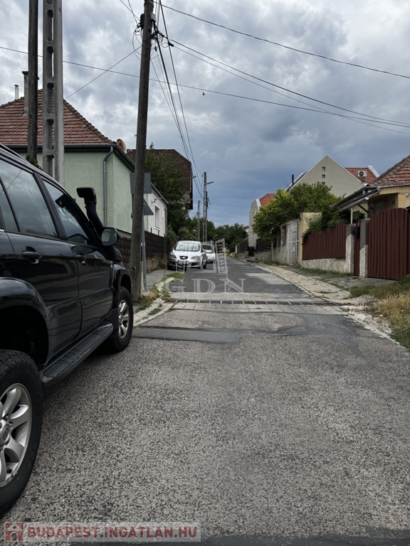 Enyhén lejtős telek, két utcafronti bejárattal (kb. 15 m széles)