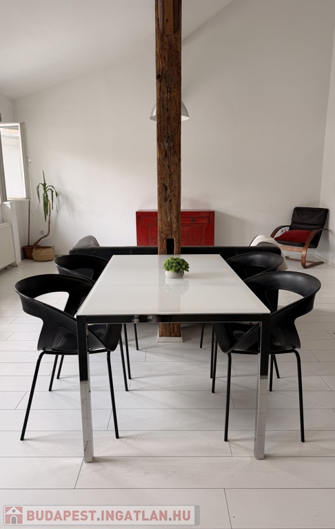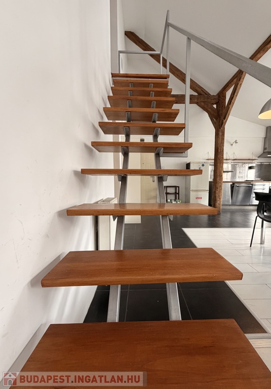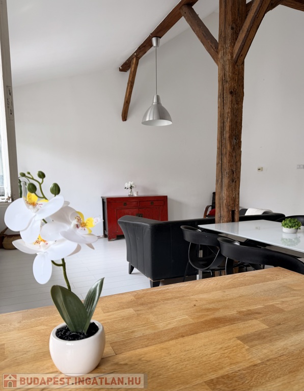 Ez az 56 m²-es, 1+1 félszobás, tetőtéri, belső kétszintes loft lakás igazi ritkaság a piacon. A lakás egy olyan épületben található, amely megőrizte eredeti gerendáit, így a 5,5 méteres belmagasság és a karakteres fa szerkezet egyedi, exkluzív atmoszférát teremt.