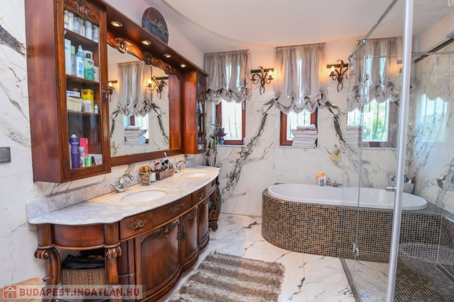 * Tetőtér: 2 szoba (15 és 13 m2), fürdő, 2 gardrobe, közlekedő, padlástér, lift, terasz
