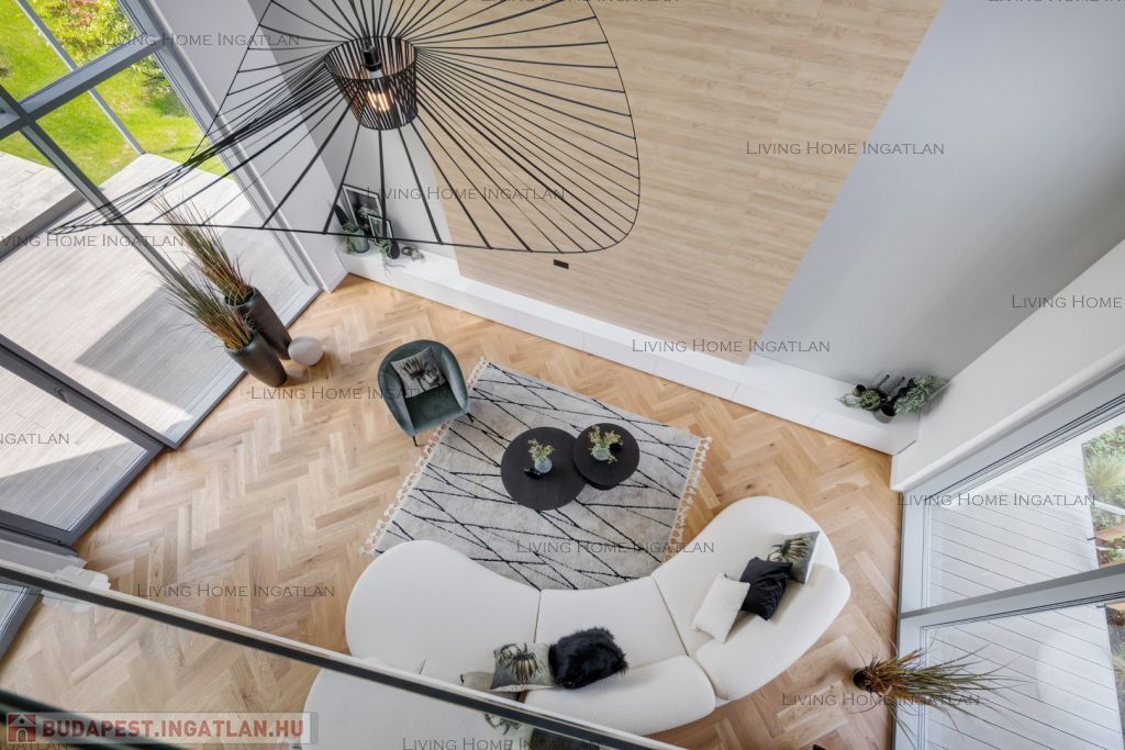 - Living room with gallery with a ceiling height of 6.5 metres.