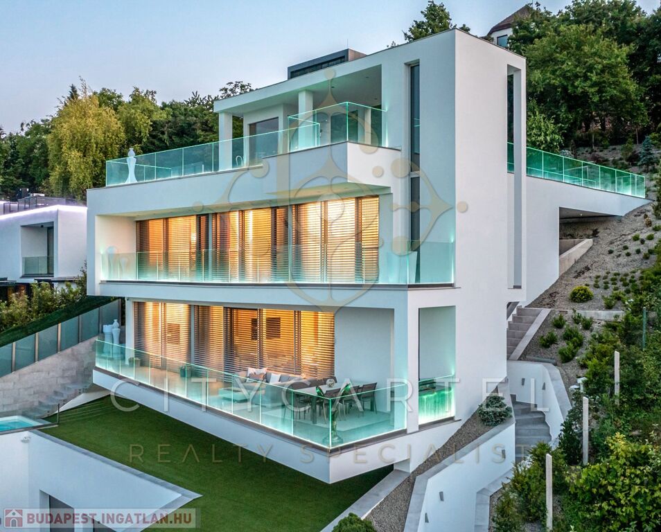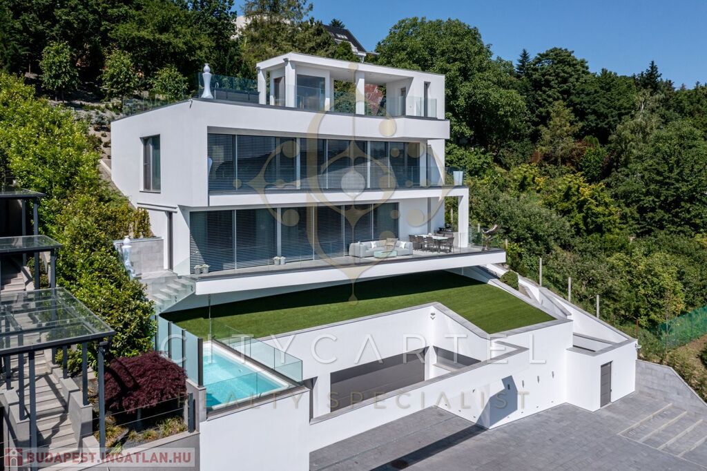 Exkluzív, teljesen berendezett luxusvillát kínálunk eladásra Budapesten, a II. kerület szívében. Ez a lenyűgöző villa nem csupán elhelyezkedésével, hanem különleges adottságaival is kiemelkedik. A villa összesen 615 négyzetméter alapterületű, egy 951 négyzetméteres telken helyezkedik el. Ez a négyemeletes remekmű az R.A.S. Design építészeti cég elképzelése alapján készült, és szenzációs kiegészítést nyújt a budai látképhez. A villa eleganciát és optimizmust testesít meg.