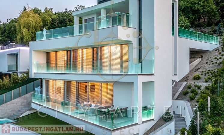 Exkluzív, teljesen berendezett luxusvillát kínálunk eladásra Budapesten, a II. kerület szívében. Ez a lenyűgöző villa nem csupán elhelyezkedésével, hanem különleges adottságaival is kiemelkedik. A villa összesen 615 négyzetméter alapterületű, egy 951 négyzetméteres telken helyezkedik el. Ez a négyemeletes remekmű az R.A.S. Design építészeti cég elképzelése alapján készült, és szenzációs kiegészítést nyújt a budai látképhez. A villa eleganciát és optimizmust testesít meg.