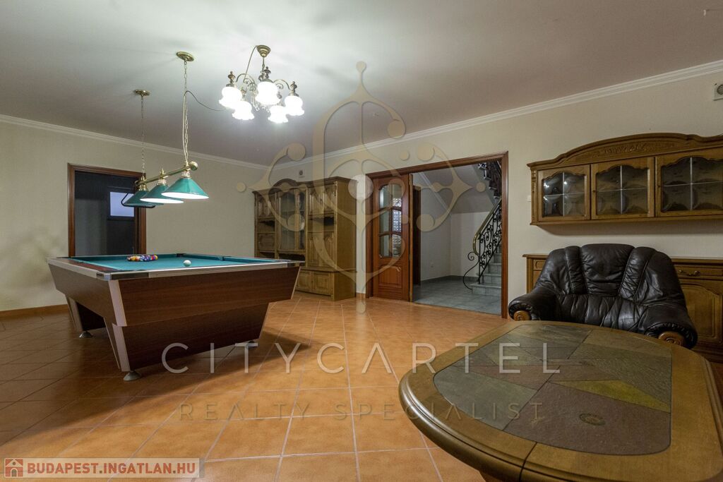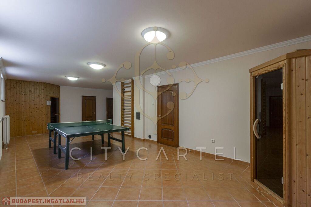 Szabadidős szint: Edzőterem, infra- és finn szauna, billiárdterem, szoba, fürdőszoba, mosókonyha, tárolók